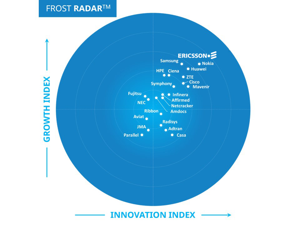 وقال فريدريك ييدلينج، نائب الرئيس التنفيذي ورئيس قسم الشبكات في إريكسون:” يسلط تقرير ™ Frost Radar الأخير الضوء على التزامنا الثابت بالابتكار والريادة التكنولوجية من خلال محفظة منتجاتنا الأكثر تنافساً. وبوجودنا في سوق مليء بالتحديات، نواصل تركيزنا على عملائنا ونمضي قدماً بمزيد من العزم “.