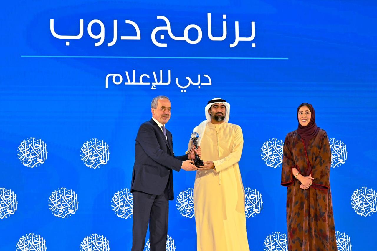 وكانت “دبي للإعلام” قد تُوجت ضمن الدورة الـ 23 من جوائز الإعلام العربية التي نظمها نادي دبي للصحافة، ممثل الأمانة العامة للجائزة، بالتزامن مع الدورة الـ 22 من منتدى الإعلام العربي الذي اختتم مؤخراً في مركز دبي التجاري العالمي، بجائزة أفضل برنامج ثقافي، استحقها برنامج “دروب” الذي يقدمه الإعلامي علي آل سلوم، وذلك بفضل تفرد رسالته وتنوع أسلوبه وقدرته على مد جسور التواصل والتعارف بين الثقافات. وكان البرنامج قد حقق مشاهدات واسعة خلال عرضه على شاشتي تلفزيون دبي وقناة سما دبي أثناء الموسم رمضان الماضي.