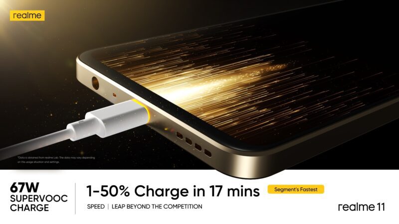 وتلتزم شركة ريلمي بالعمل على تطوير تقنيات شحن أسرع وذلك لتأكيد ريادتها لمفهوم الشحن السريع منذ فترة طويلة، والذي يتفوق بشكل كبير على منافسيه في هذه الفئة، لذا تتميز شركة ريلمى بالشاحن فائق السرعة و القوة، يأتي realme 11 4G بشاحن SUPER VOOC بقوة 67 واط ، و ذالك ما يميزه عن غيرة في الأسواق . يمكن لهذا النظام القوى شحن بطارية realme 11 4G التي يعد بسعة 5000 مللي أمبير إلى 50٪ في 17 دقيقة فقط.