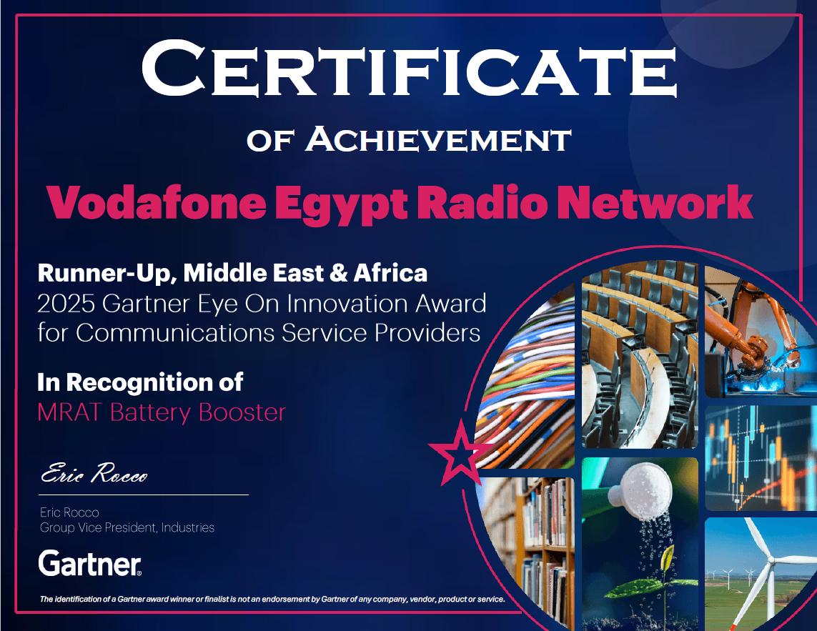 في إنجاز عالمي جديد يعكس ريادتها التكنولوجية، حصدت ڤودافون مصر جائزة Gartner Eye on Innovation لعام 2025 لقطاع مقدمي خدمات الاتصالات، تقديرًا لاستخدامها المبتكر للذكاء الاصطناعي في تطوير حل MRAT Availability Booster، الذي يُعد نقلة نوعية في إدارة الشبكات وضمان استمرارية الخدمات على نطاق واسع.
