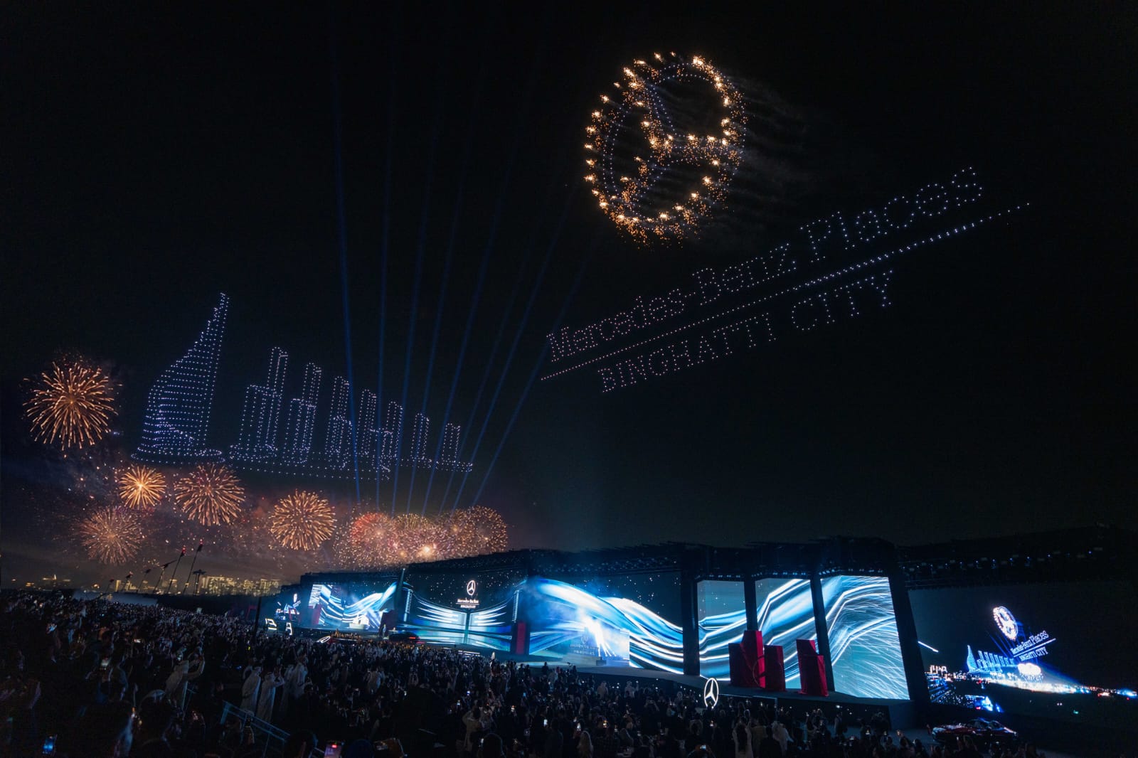 وتخلل الحفل عرض حصري لمفهوم Vision One-Eleven من مرسيدس-بنز للمرة الأولى في الشرق الأوسط، إلى جانب افتتاح غنائي عالمي أحياه التينور الأسطوري أندريا بوتشيلي، إضافة إلى عروض درون وإسقاطات ليزرية وألعاب نارية جسّدت المخطط العام للمشروع على سماء ند الشبا.